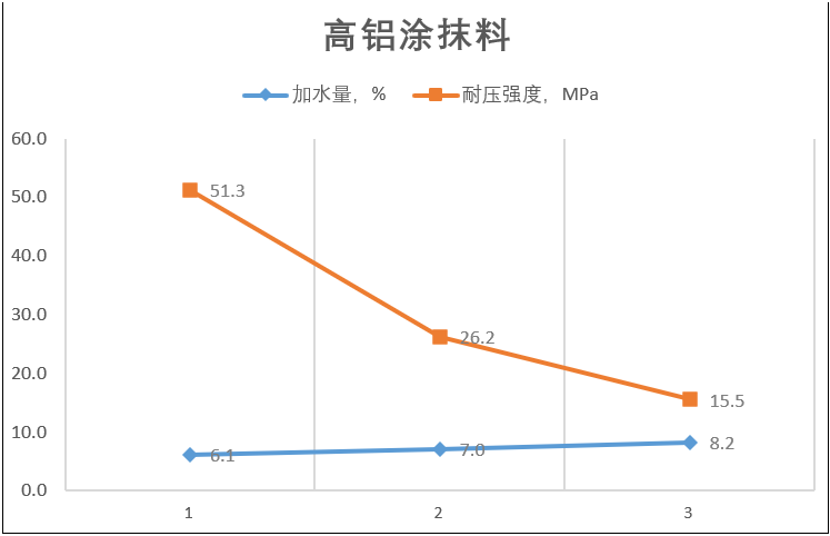 这种涂抹料加水搅拌后会呈现较强黏塑性,受到搅拌设备转速和施工人员经验等影响,容易造成施工加水量偏多的现象。以上情况发生时容易造成涂抹料的涂抹性能下降,尤其是增加水量将严重影响涂抹料的强度性能和使用寿命。
