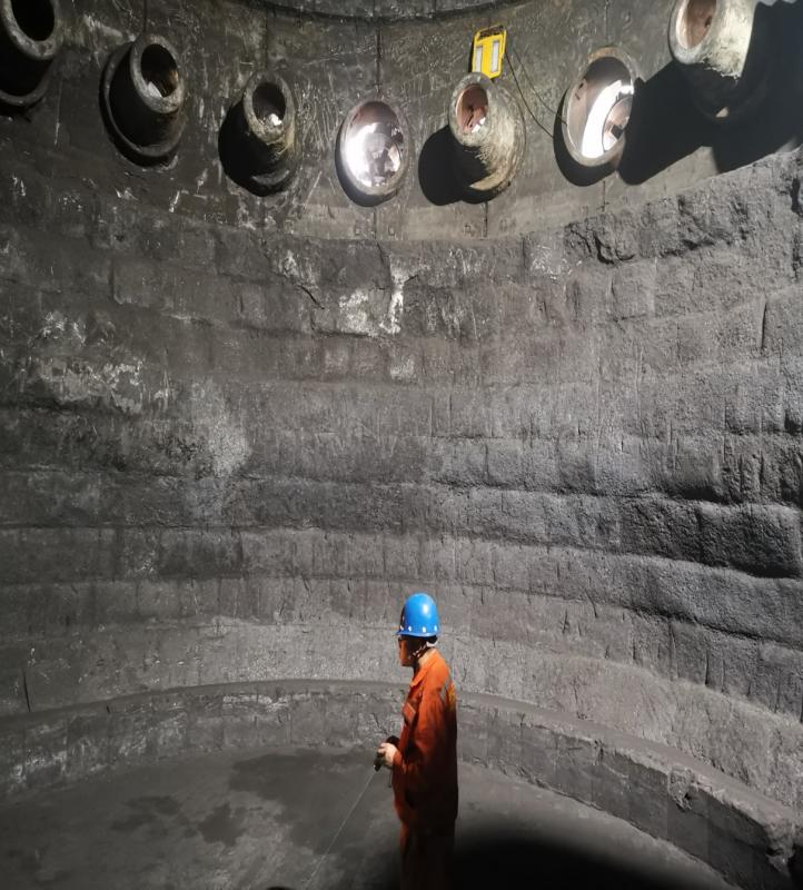 图为大高炉利旧碳砖保护性清理