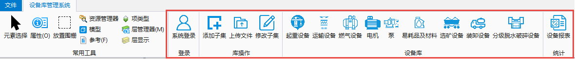 “库操作”组别是对单元子集的添加、修改、文件上传等操作,面向高级用户,“添加子集”模块可对模型与信息同时添加,添加后的设备编码会自动赋予;“修改子集”模块是对信息模型属性信息的修改操作;“上传文件”模块是对服务器端某分类下模型文件的替换操作。