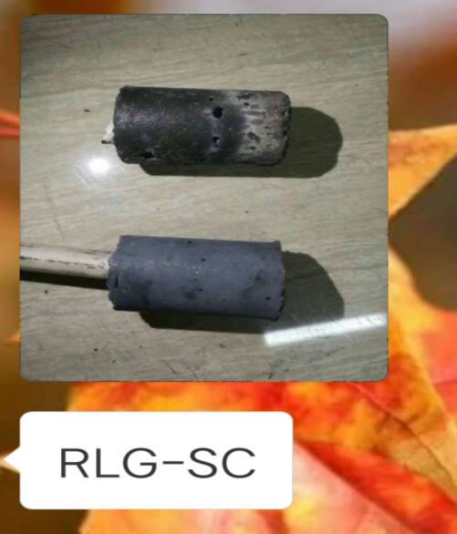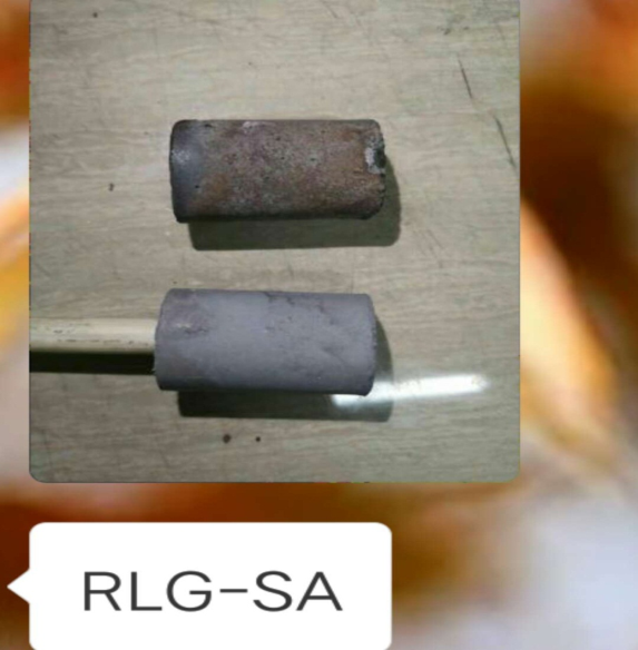 二是材料抗铁侵蚀性能。如图3所示,按照国家检测标准要求,将两种炉缸浇注料试块(RLG-SC属替代碳砖用的高导热浇注料、RLG-SA属陶瓷杯浇注料)做成标准试块且在铁水中可旋转,形成对流。在1500℃条件下旋转3个小时,材料冷却后观察表面浸润情况和增重情况。检测数据如表1所示,相较于定形砖,炉缸浇注料显示出极好的抗铁侵蚀效果。