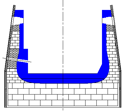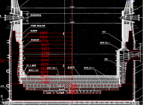 陶瓷杯构造是以上所提问题的核心。停炉检修,处理炉缸渣料过程,若陶瓷杯表面覆盖均匀的粘滞渣层,则避免了开炉渗铁的风险,且烘炉过程,粘滞层的保护,能有效分布炉缸陶瓷杯应力,提高开炉效率。砖陶瓷杯容易出现渗铁而逐步瓦解的情况,且导热系数较低,无法形成有效的粘滞层保护陶瓷杯;一般情况下,砌筑陶瓷杯,开炉前会在工作层表面砌筑黏土砖作为保护,而这种检修方式在不放残铁的高炉上无法实现。
