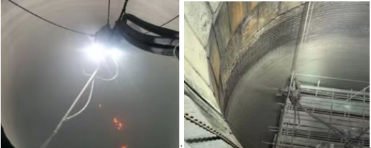 内衬湿法喷注技术的目的是为了解决炉腹、炉腰、炉身等部位耐材脱落引起的气流不顺、能耗升高等问题,其特点是快速高效,可以在较短时间内复产,降低对铁厂的影响。湿法喷注技术可分热态和常温两种,热态湿法喷注技术是将料面降到风口区域后,炉内覆盖压火料,采用机械手进行喷注造衬,使高炉恢复至操作炉型。这种喷注方式快速安全,人员不用进炉,没有有限空间作业,对于2000m3左右的高炉,在24小时内即可修复完成。常温湿法喷注技术是在停炉降料面后,炉内温度和煤气含量降到一定标准后,人员进炉内排险清理,也可对炉内植筋挂网,延长耐材使用寿命。