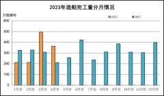 按修正总吨计,中国造船完工量、新接订单量、手持订单量分别占世界市场份额的44.3%、62.4%和45.4%。