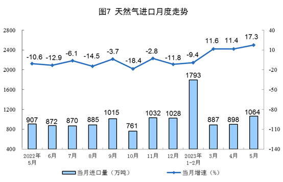 1—5月份,生产天然气973亿立方米,同比增长5.3%。进口天然气4629万吨,同比增长3.3%。