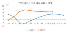 据中国汽车工业协会整理的国家统计局数据显示,2023年1-10月,工业生产有所加快,汽车行业工业增加值保持较快增长。