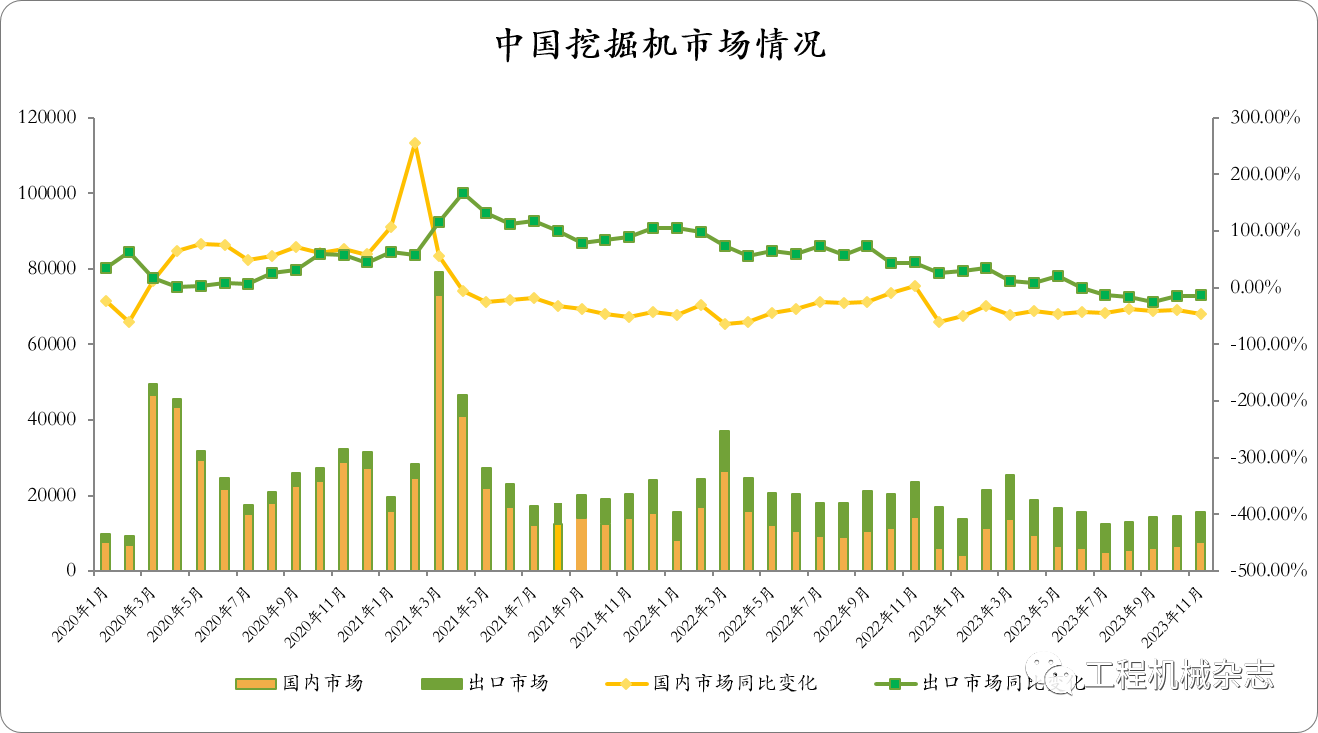 总体来看,受标准切换等因素影响,2022年下半年以来,尤其是9-11月,市场销量处于相对高位。降幅小幅扩大,不影响中国挖掘机械行业筑底改善,长期向好的趋势。