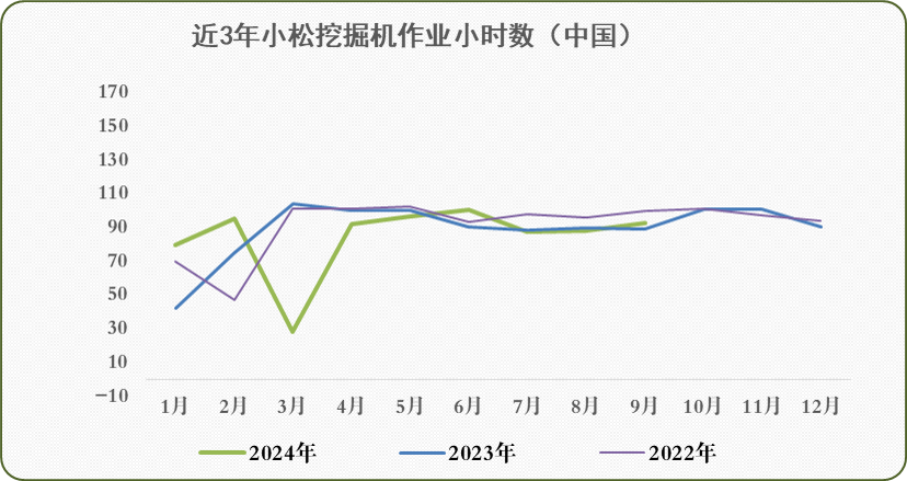 2024年9月小松挖掘机开工小时数为95.3小时同比增长6.9%