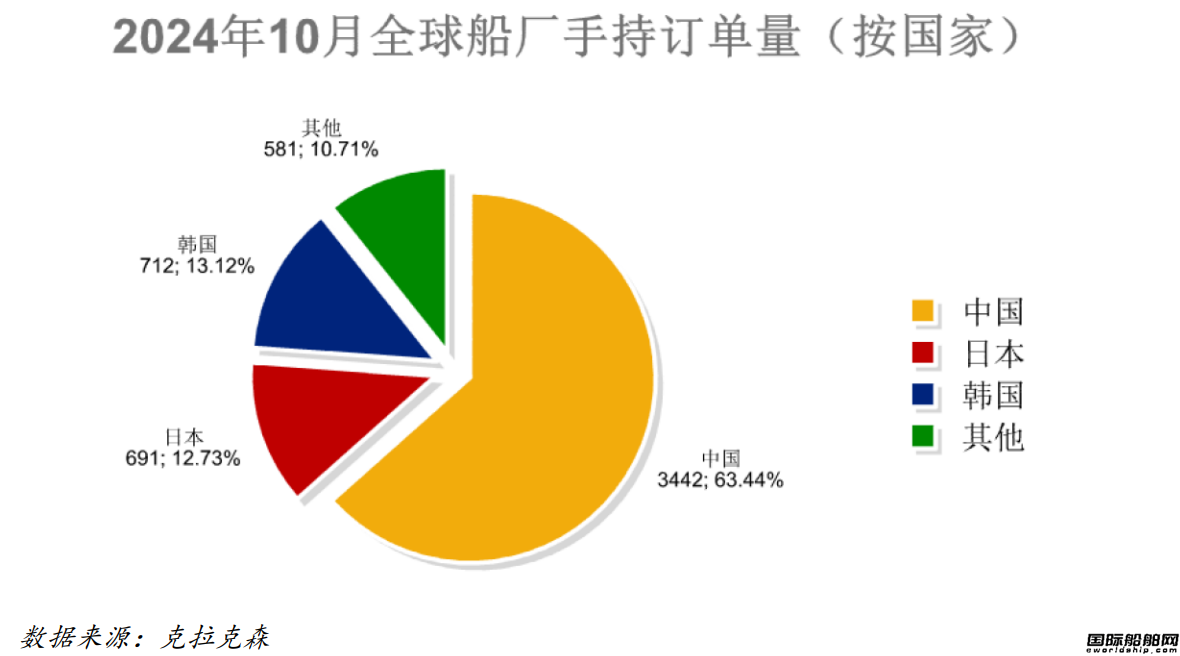 全球手持订单5426艘,中国船厂3442艘占全球市场份额的63.44%