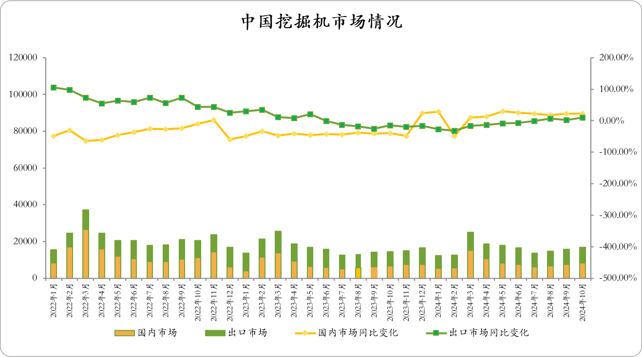 经草根调查和市场研究,CME预估2024年11月挖掘机(含出口)销量16900台左右,同比增长13%左右。市场持续回暖:国内市场筑底回升态势明显,出口市场逐步修复,持续复苏。