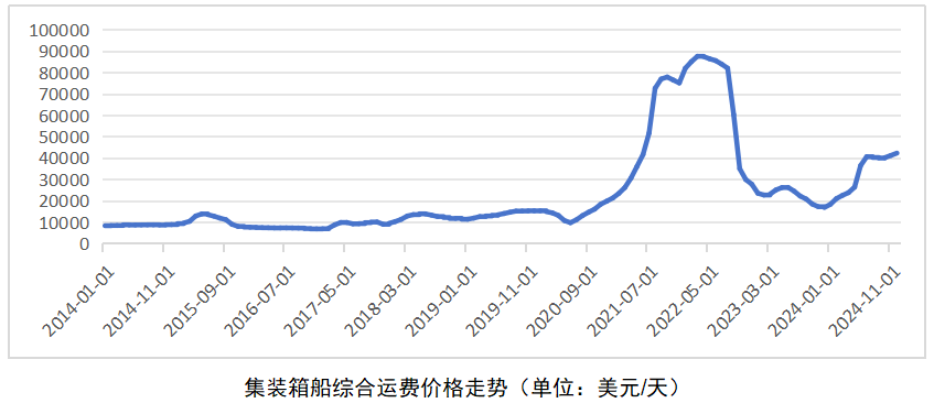 航运业近年来受突发事件的影响最为明显,运费市场也在起落中寻找供需两端最合适的位置。从2024年的走势来看,市场整体呈现波动下滑的态势,年初年末的综合运费价格跌幅达到18%。特别是进入后半年,液货运输(含原油、成品油、LNG、LPG)、干散货以及汽车运输等主要货运船型出现明显回调,有些船型的运费已经回归历史常态。仅有集运市场继续受红海危机、自然灾害等突发因素保持了可观的增长。如果下游航运收益出现大幅波动,可能会影响船东的现金流水平,对部分船东持续执行新造船或更新船队的计划产生影响,将不利于新造船市场。