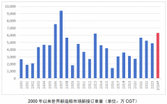 回看2024年世界新造船市场的发展,“丰收”和“创纪录”是今年市场的关键词,其发展势头不得不让人联想起2007年和2008年上一轮超级周期的盛况。2024年的市场成绩值得铭记。