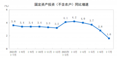 2025年1—7月份,全国固定资产投资(不含农户)288229亿元,同比增长1.6%(按可比口径计算,详见附注7)。其中,民间固定资产投资同比下降1.5%。从环比看,7月份固定资产投资(不含农户)下降0.63%。