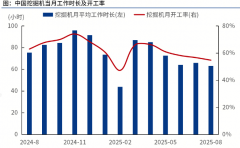 8月,我国工程机械主要产品月平均工作时长为78.4小时,同比下降9.45%,环比下降2.92%。其中,挖掘机当月平均工作时长63.3小时。