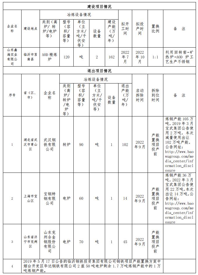 按照《国务院关于化解产能严重过剩矛盾的指导意见》《国务院关于钢铁行业化解过剩产能实现脱困发展的意见》和《钢铁行业产能置换实施办法》要求,现将山东鑫海实业有限公司年产162万吨高端不锈钢合金材料工程炼钢产能置换方案予以公告,欢迎社会公众进行监督。