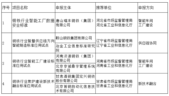 四个钢铁项目拟入选工信部2022年度智能制造标准应用试点项目名单
