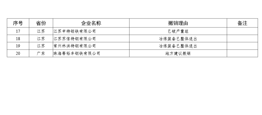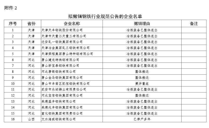 2.拟撤销钢铁行业规范公告的企业名单