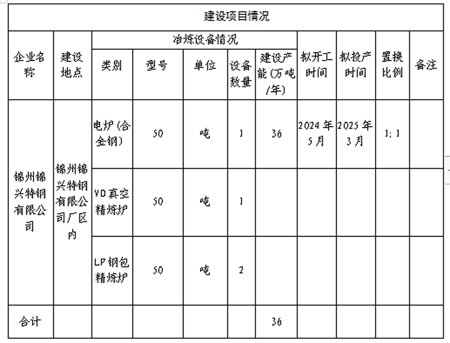按照《国务院关于化解产能严重过剩矛盾的指导意见》《国务院关于钢铁行业化解过剩产能实现脱困发展的意见》和《钢铁行业产能置换实施办法》要求,现将锦州锦兴特钢有限公司建设项目产能置换方案予以公告,欢迎社会公众进行监督。