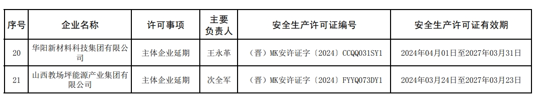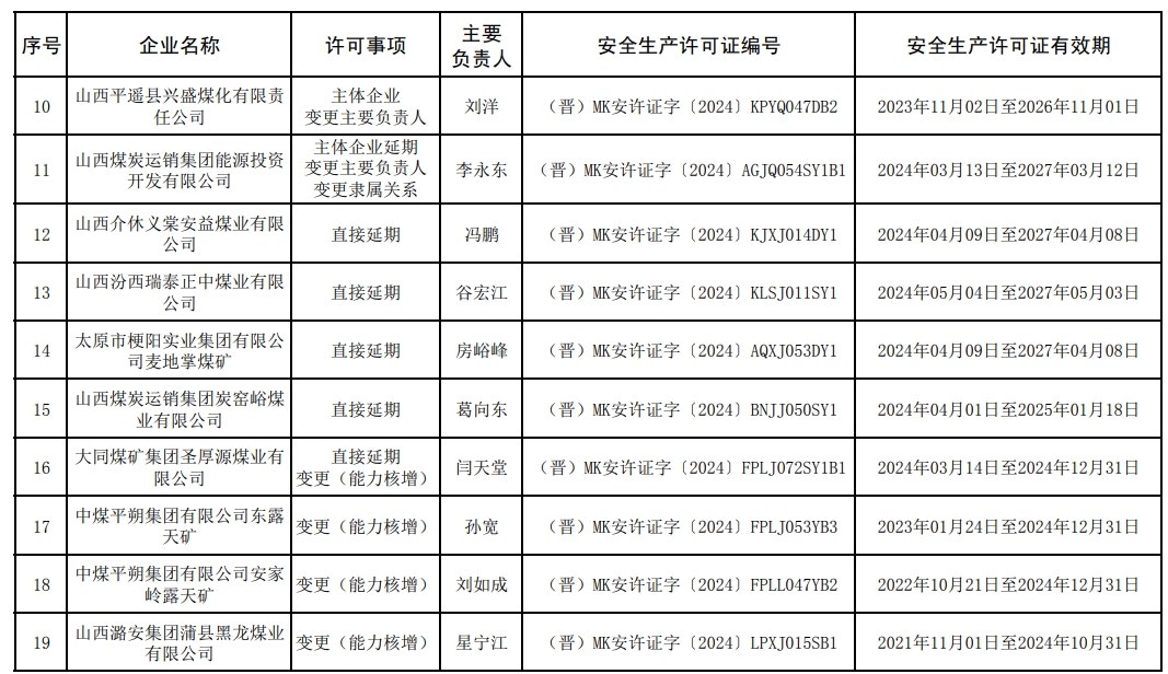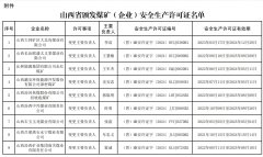 经研究,按照有关规定,为山西大同矿区大北沟煤业有限公司等 21 座煤矿(企业)颁发安全生产许可证,现进行公告。