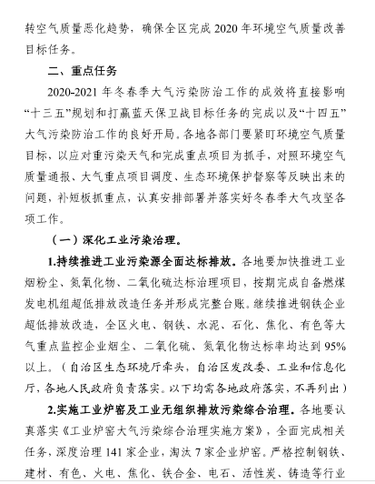 附原文:《2020-2021年宁夏冬春季大气污染综合治理攻坚行动方案(征求意见稿)》印发