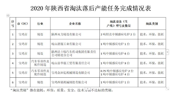 根据《2020年陕西省淘汰落后产能工作方案》涉及的落后产能退出任务,现将2020年度淘汰落后产能完成情况予以公示,欢迎社会各界监督。如有异议,请在公示期内及时反馈。