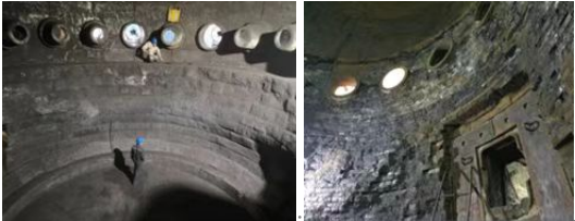 内衬湿法喷注技术的目的是为了解决炉腹、炉腰、炉身等部位耐材脱落引起的气流不顺、能耗升高等问题,其特点是快速高效,可以在较短时间内复产,降低对铁厂的影响。湿法喷注技术可分热态和常温两种,热态湿法喷注技术是将料面降到风口区域后,炉内覆盖压火料,采用机械手进行喷注造衬,使高炉恢复至操作炉型。这种喷注方式快速安全,人员不用进炉,没有有限空间作业,对于2000m3左右的高炉,在24小时内即可修复完成。常温湿法喷注技术是在停炉降料面后,炉内温度和煤气含量降到一定标准后,人员进炉内排险清理,也可对炉内植筋挂网,延长耐材使用寿命。