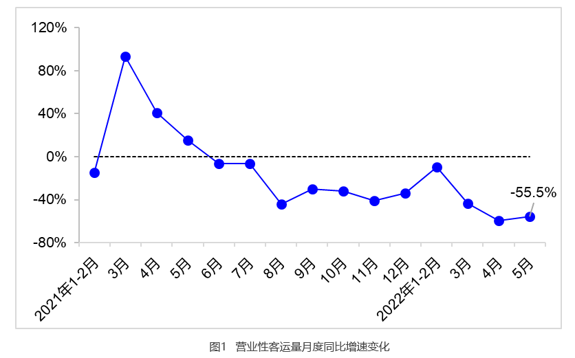 1—5月,完成营业性客运量22.5亿人,同比下降38.4%。其中,完成公路营业性客运量14.9亿人,同比下降33.7%;完成水路客运量3743万人,同比下降48.7%。
