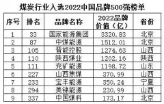 煤炭行业共有9家企业入选《2022中国品牌500强》。具体名单如下: