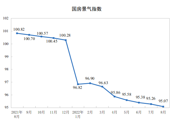 8 月份,房地产开发景气指数(简称“国房景气指数”)为 95.07 。