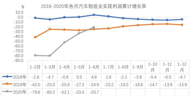 据中国汽车工业协会整理的国家统计局公布的最新数据显示,2020年1-6月,汽车制造业实现利润1904.2亿元,同比下降20.7%,降幅比1-5月收窄12.8个百分点,比去年同期收窄4.2个百分点,占规模以上工业企业实现利润总额的7.6%,比1-5月高出1.1个百分点,但仍低于同期。