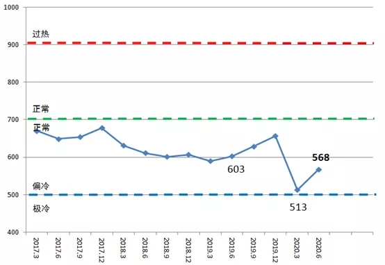 2020年二季度中国造船产能利用监测指数(CCI)为568点,与2019年二季度603点相比,下降35点,同比下降5.8%;与2020年一季度513点相比,回升55点,环比上涨10.7%。