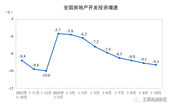 2023年1-10月份,全国房地产开发投资95922亿元,同比下降9.3%(按可比口径计算;其中,住宅投资72799亿元,下降8.8%。1—10月份,房地产开发企业房屋施工面积822895万平方米,同比下降7.3%。其中,住宅施工面积579361万平方米,下降7.7%。房屋新开工面积79177万平方米,下降23.2%。其中,住宅新开工面积57659万平方米,下降23.6%。