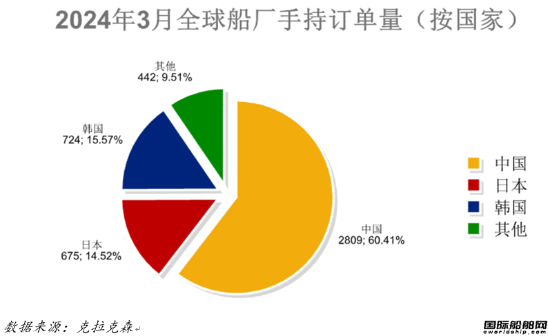 全球手持订单4650艘,中国船厂2809艘占全球市场份额60.41%