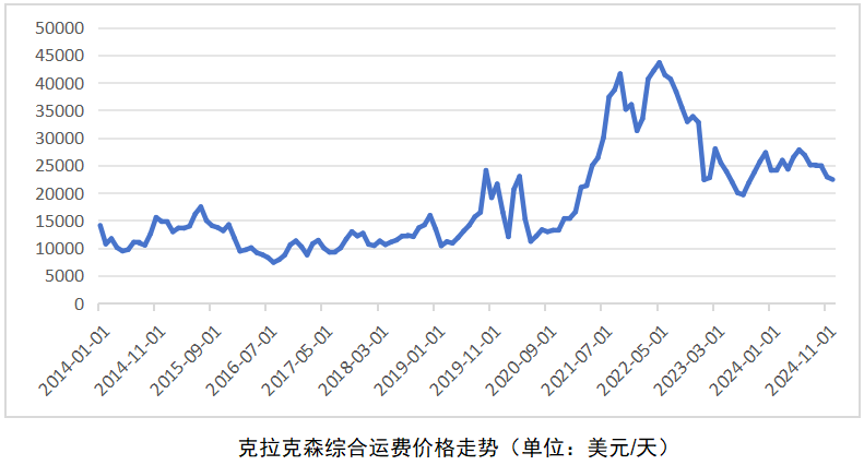 航运业近年来受突发事件的影响最为明显,运费市场也在起落中寻找供需两端最合适的位置。从2024年的走势来看,市场整体呈现波动下滑的态势,年初年末的综合运费价格跌幅达到18%。特别是进入后半年,液货运输(含原油、成品油、LNG、LPG)、干散货以及汽车运输等主要货运船型出现明显回调,有些船型的运费已经回归历史常态。仅有集运市场继续受红海危机、自然灾害等突发因素保持了可观的增长。如果下游航运收益出现大幅波动,可能会影响船东的现金流水平,对部分船东持续执行新造船或更新船队的计划产生影响,将不利于新造船市场。