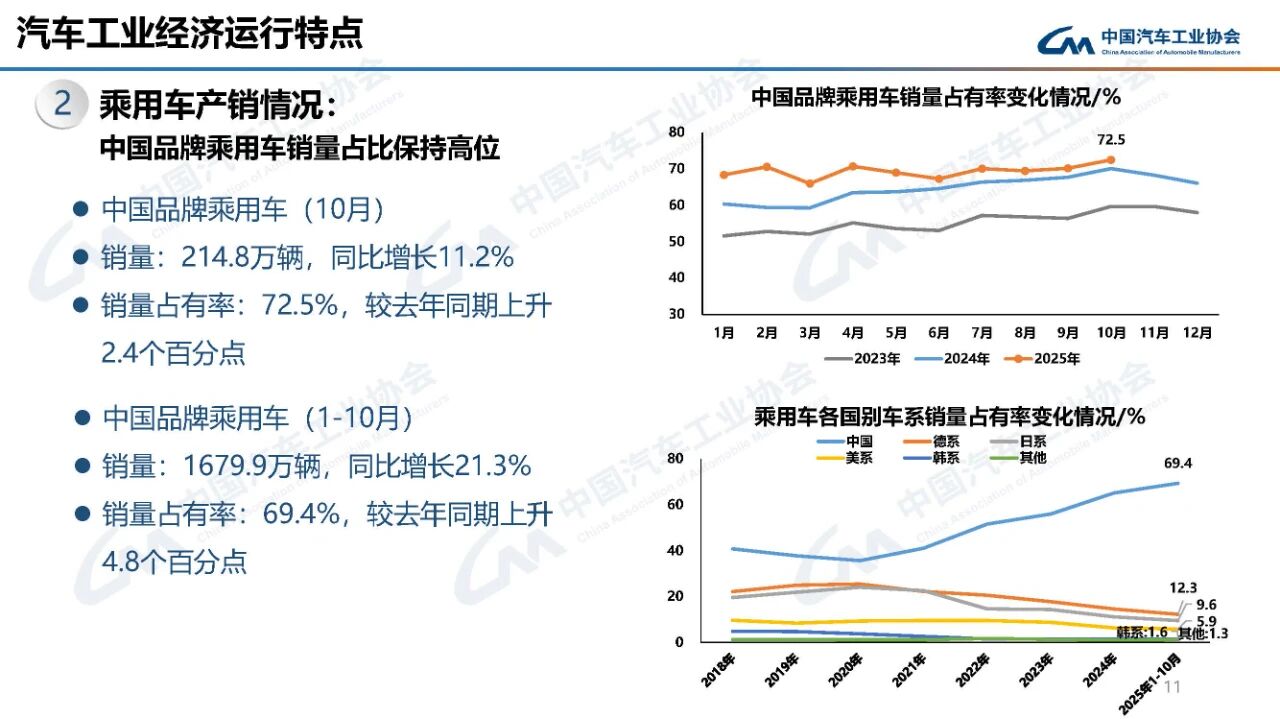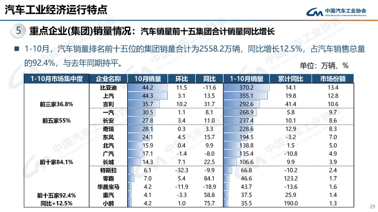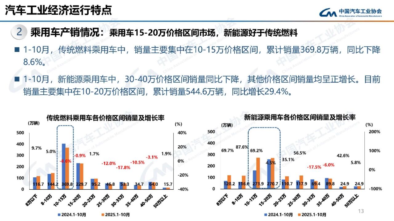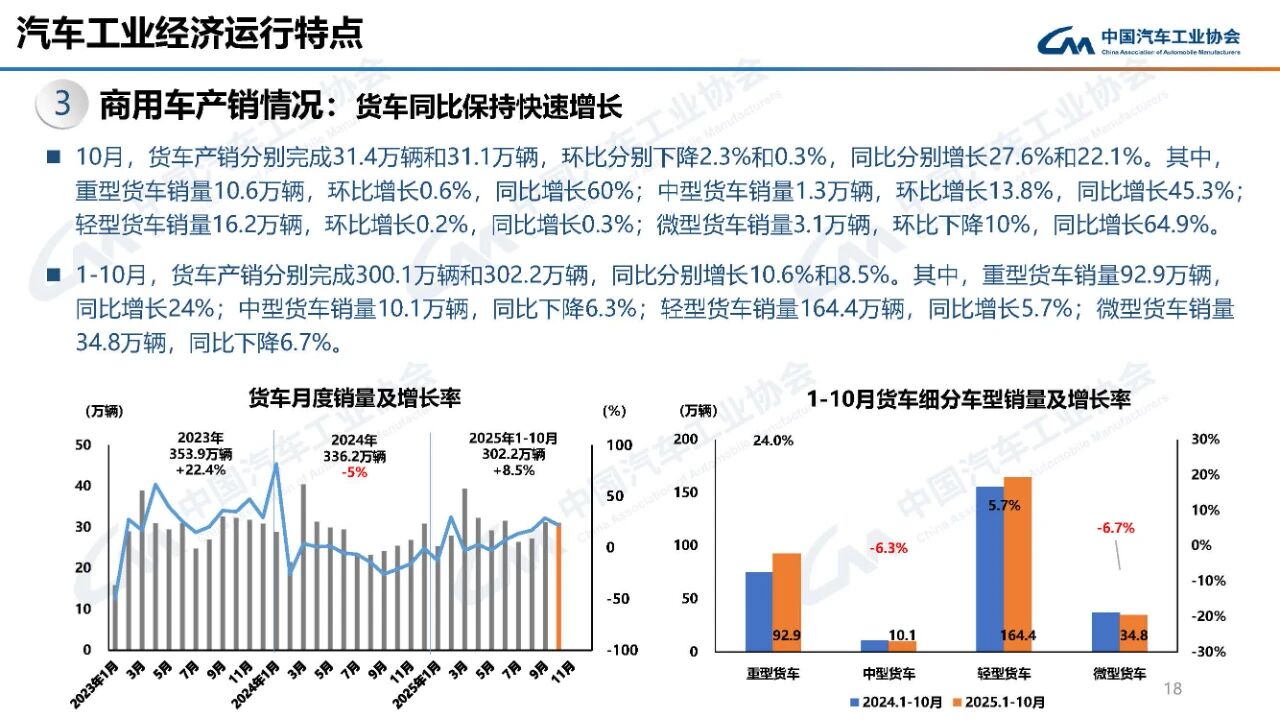 据中国汽车工业协会分析,10月,车企抢抓年底政策切换窗口期,生产供给保持较快节奏。企业新品继续密集上市、行业综合治理工作稳步推进,汽车市场延续良好发展态势,月度产销创同期新高。其中,乘用车市场稳健增长,商用车市场持续向好,新能源汽车较快增长,对外贸易呈现较好韧性。