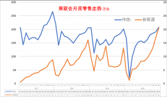 新能源车市场与传统车市场销量在17年至18年走势有巨大的差异性,17年和18年新能源车市场都呈现年度内持续、单边的快速上扬态势。而传统车市场呈现逐步的下行态势。