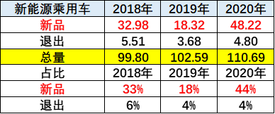 根据乘联会零售数据,2018年整体零售100万车的情况下,新品的销售达到32.98万台,占比33%。而2019年在总体达到102.6万辆零售量情况下,新品销量达到18.32万辆,新品占比达到18%的比例。2020年整体零售达到111万辆的情况下,新品销量达到48万台,占比达到总量44%的。