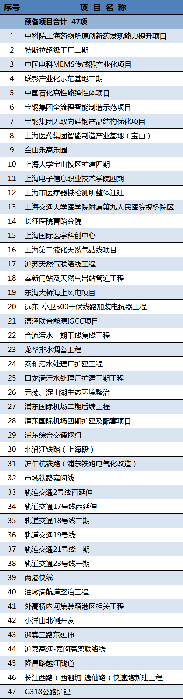 重大预备项目是指项目现阶段手续尚未齐全,待齐全后近期准备实施的项目。来源:上海市发展和改革委员会