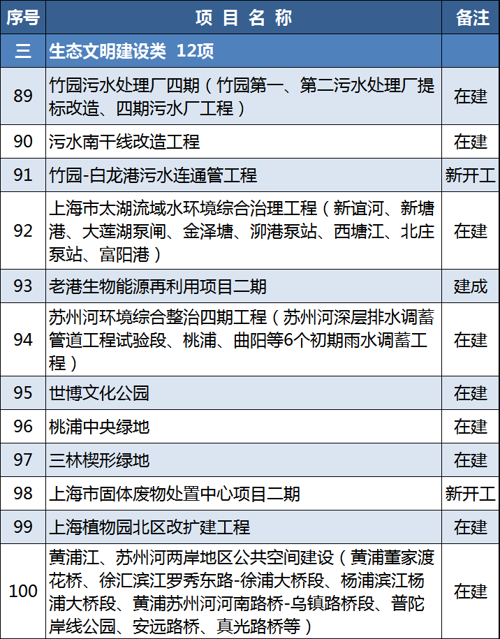 计划新开工2项:竹园白龙港污水连通管工程、上海市固体废物处置中心项目二期。