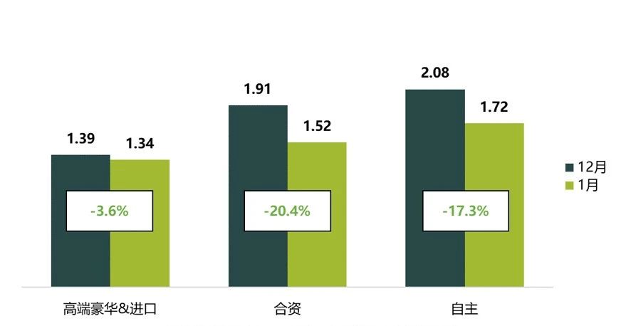目前,车市消费升级的高端换购需求依旧旺盛,豪华品牌继续保持强势增长特征,库存系数处于合理范围内;春节返乡人员比往年减少,合资和自主品牌的库存消化未能达到目标。
