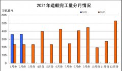 2021年1~2月份,全球新冠肺炎疫情有所缓和,世界经济增长逐步恢复,国际航运指数小幅回升。我国造船企业完工量和新承接订单量同比增长,手持订单量略有下降。受船用钢材等原材料价格快速上涨的影响,重点监测船舶企业虽然收入增长但利润出现亏损。一、全国三大造船指标两增一降1~2月份,全国造船完工723万载重吨,同比增长54.7%。承接新船订单681万载重吨,同比增长105%。2月底,手持船舶订单7051万载重吨,同比下降12.2%,比2020年底下降0.8%。1~2月份,全国完工出口船665万载重吨,同比增长46.8%;承接出口船订单488万载重吨,同比增长50.6%;2月末手持出口船订单6226万载重吨,同比下降15.8%。出口船舶分别占全国造船完工量、新接订单量、手持订单量的92%、71.6%和88.3%。