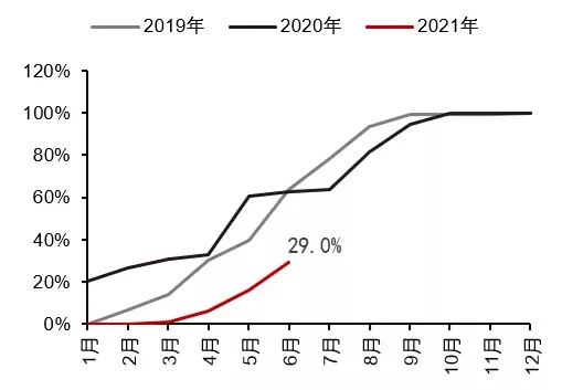 上半年新增地方政府专项债发行进度显著慢于2019年和2020年。