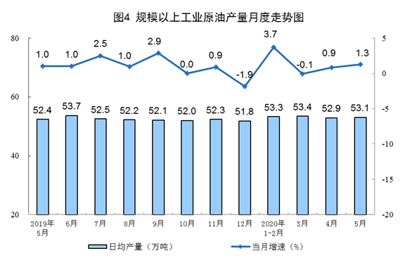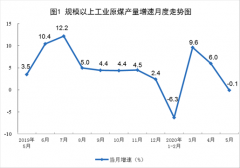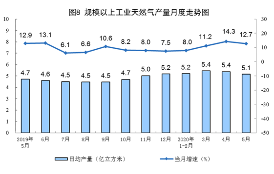 5 月份,规模以上工业原煤生产由增转降,原油和电力生产加快,天然气生产保持较快增长。