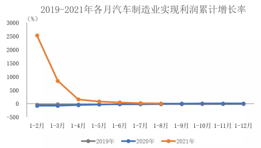 据中国汽车工业协会整理的国家统计局公布的数据显示,2021年1-8月,汽车制造业实现利润同比增速已经回落至个位数,降幅明显回落。