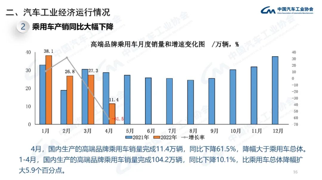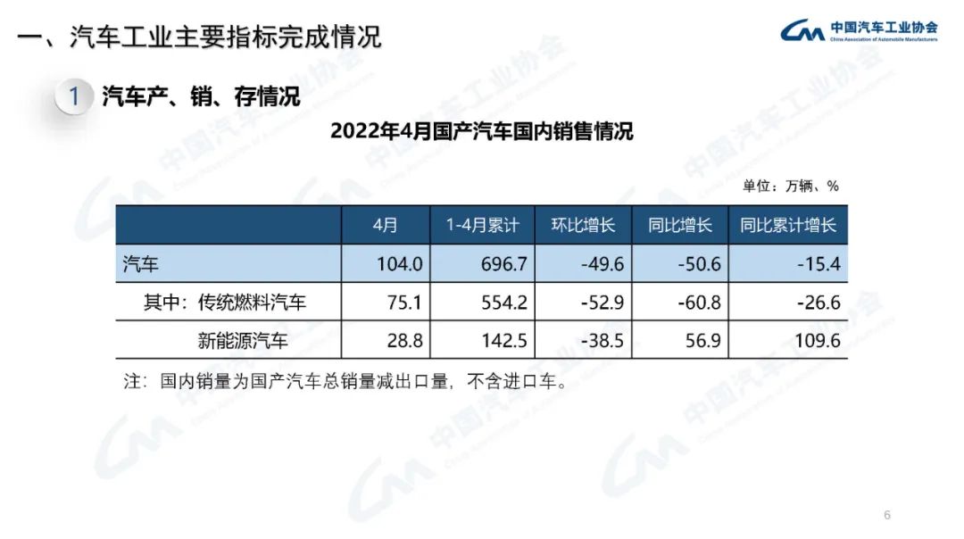 中汽协:4月汽车销量104万辆,同比降50.6%