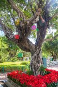 在南山路段,大红灯笼、中国结等灯具已整齐地悬挂在树干或铁丝上,煞是好看。