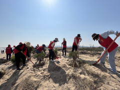 3月10日,海滨度假村组织党员志愿者前往下沙海滩开展海防义务植树活动。