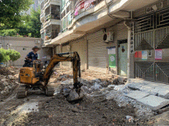 记者在项目施工现场看到,小区部分破损路面已拆除完毕,钩机正在开挖沟渠,以便后期铺设雨污管网,解决雨水和污水排放问题。