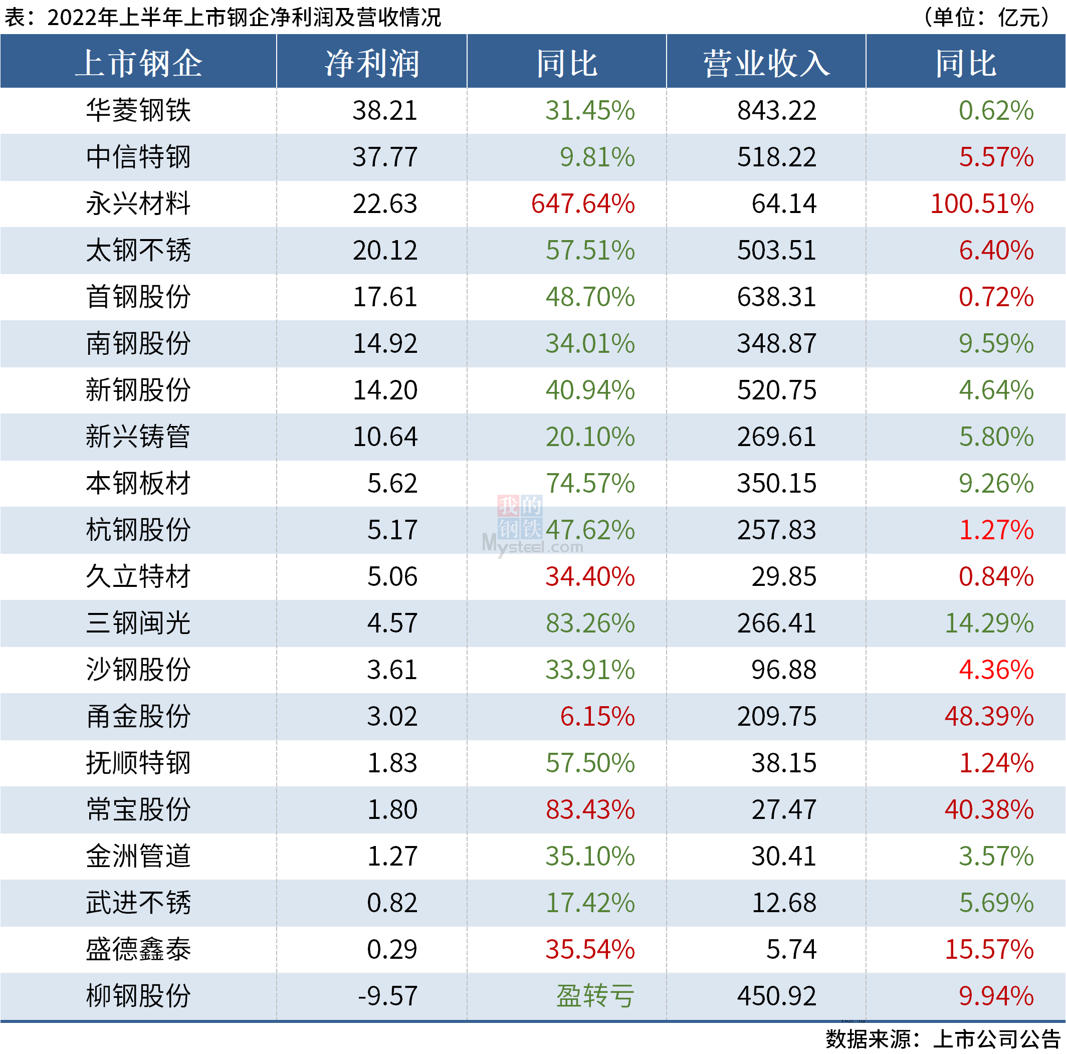 据Mysteel不完全统计,截至8月24日,已有20家上市钢企公布2022年上半年业绩公告。