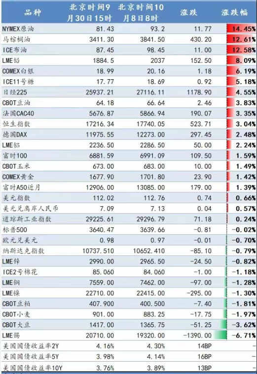 8、国庆假期外围股市期货涨跌一览