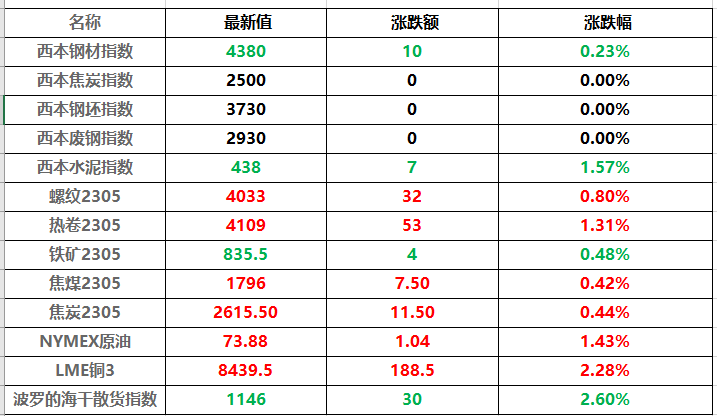 LME期铜收涨122美元,报8374美元/吨。LME期铝收跌11美元,报2256美元/吨。LME期锌收涨13美元,报3005美元/吨。LME期铅收跌50美元,报2218美元/吨。LME期镍收跌2020美元,报27748美元/吨。LME期锡收跌234美元,报24861美元/吨。LME期钴收跌455美元,报50000美元/吨。